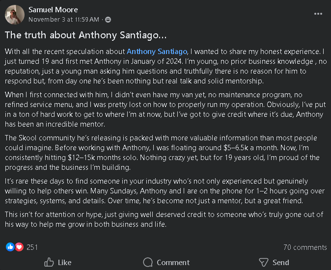 Inside Anthony Santiago’s Skool group, you’ll learn the exact strategies top detailers are using to: